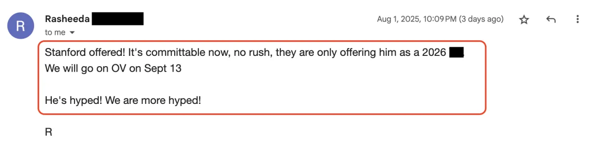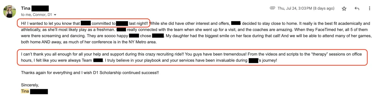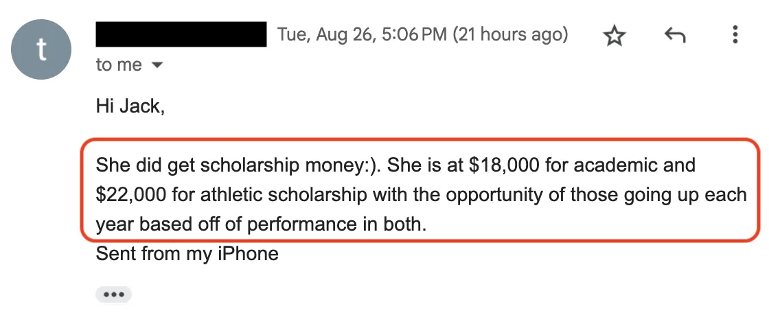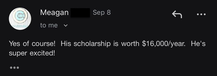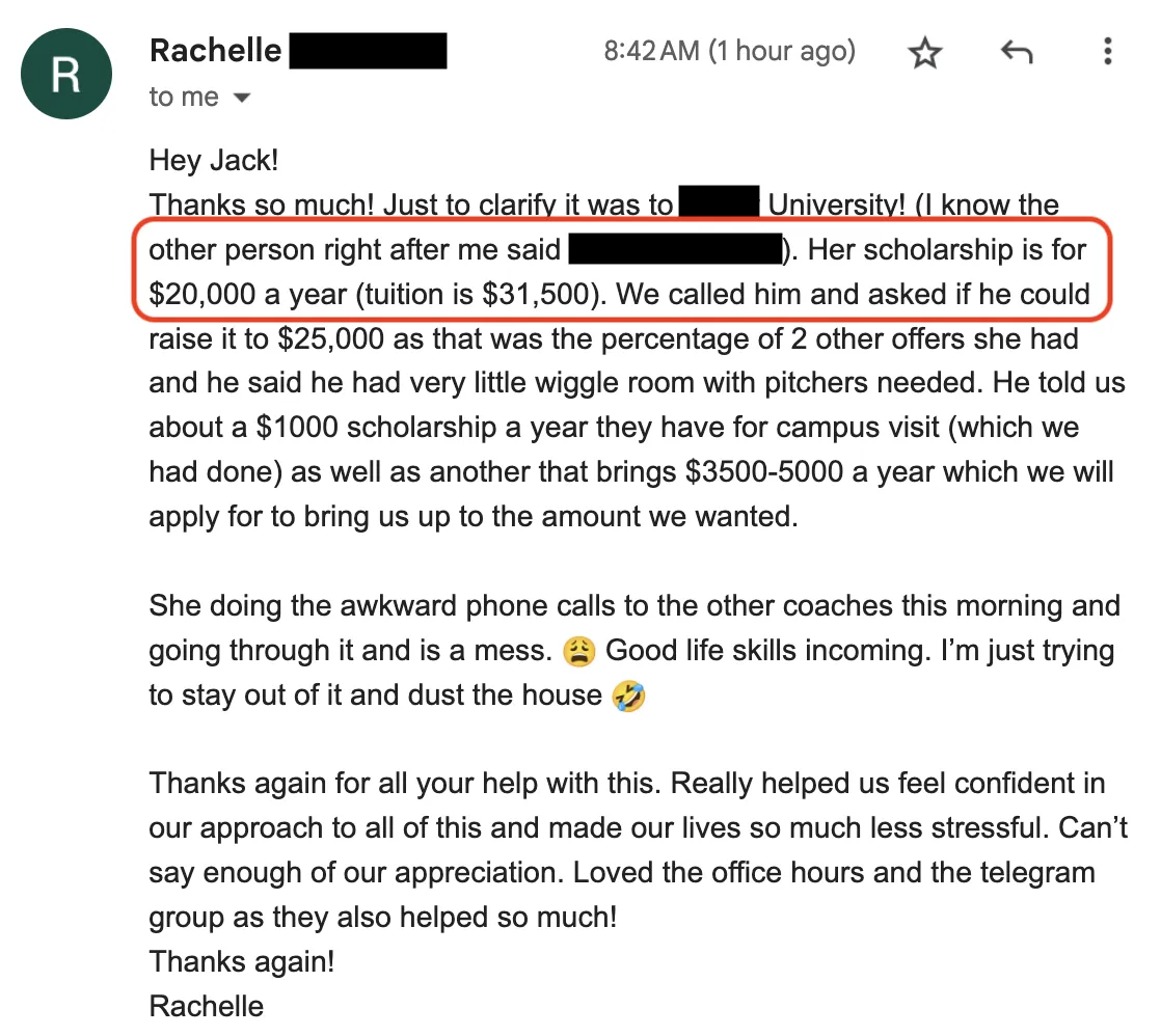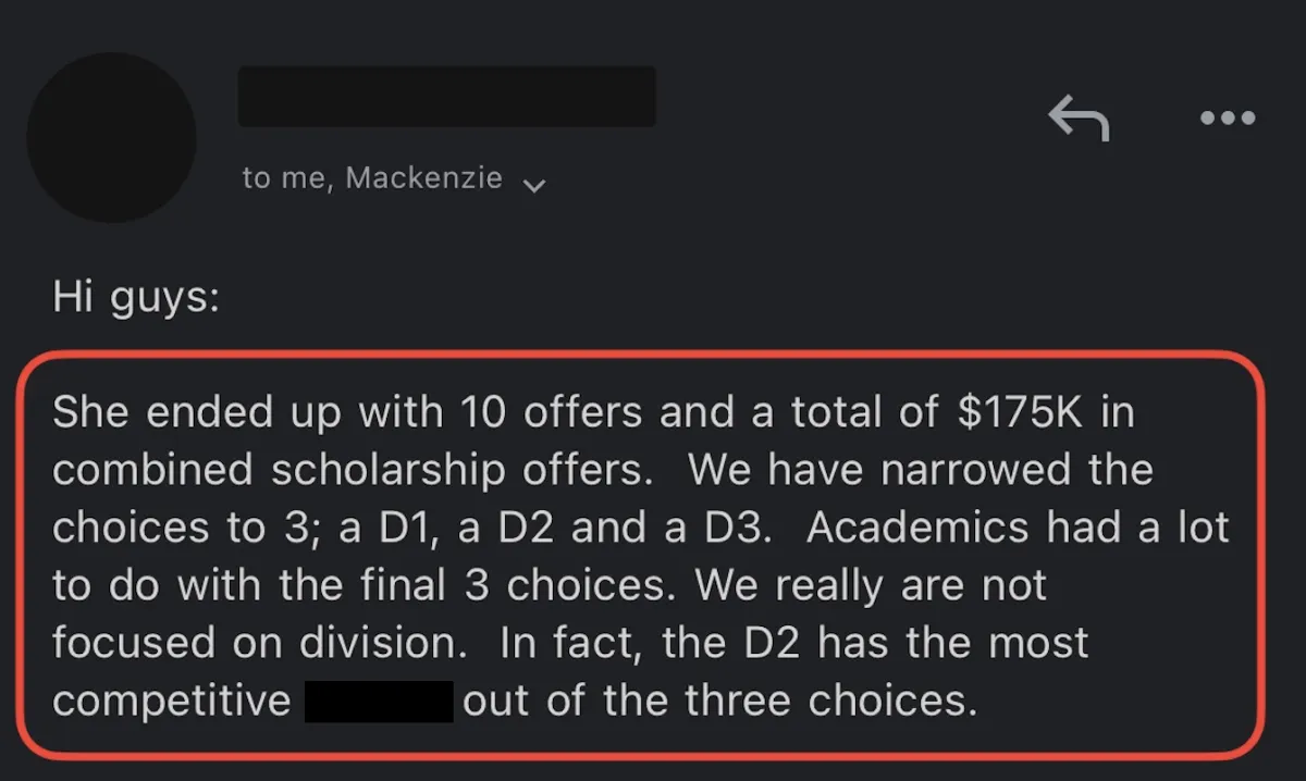 ⭐️⭐️⭐️⭐️⭐️ "We ended up with 10 offers and a total of $175k in combined scholarships" - Gwyn