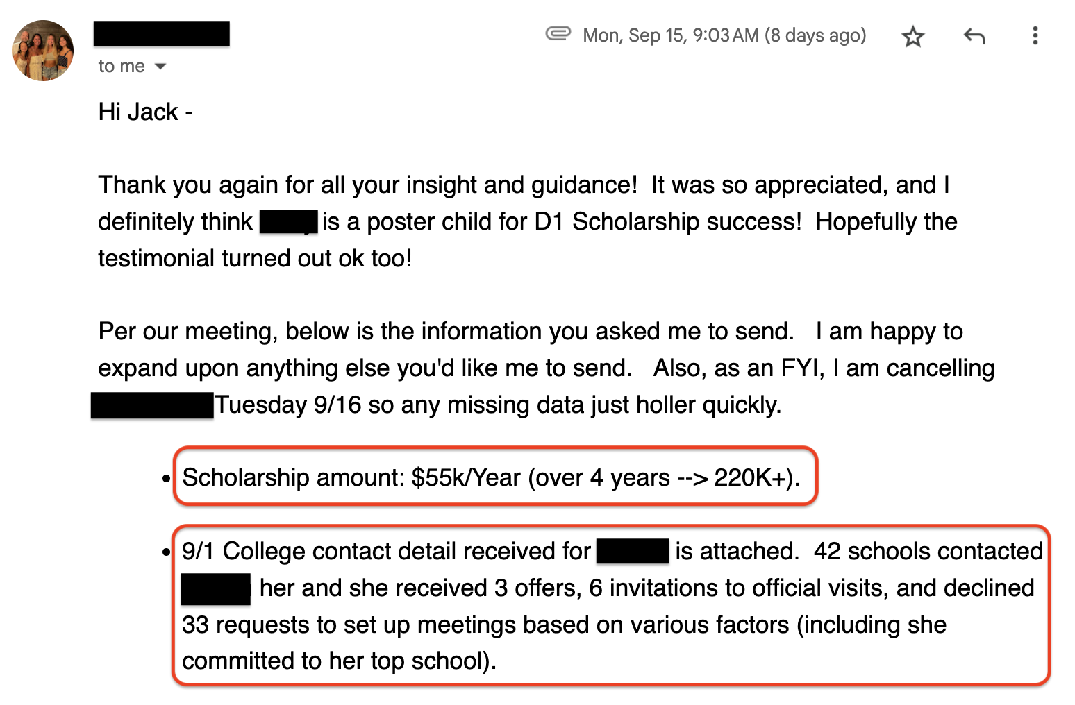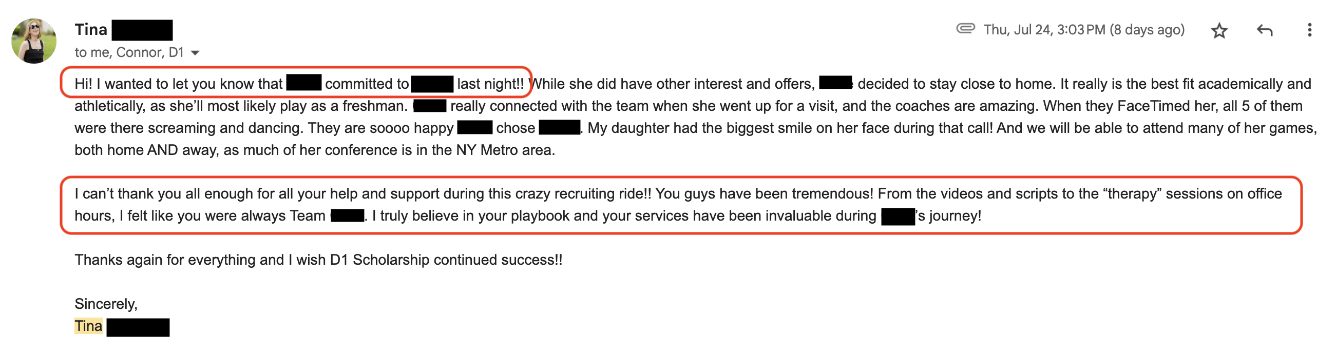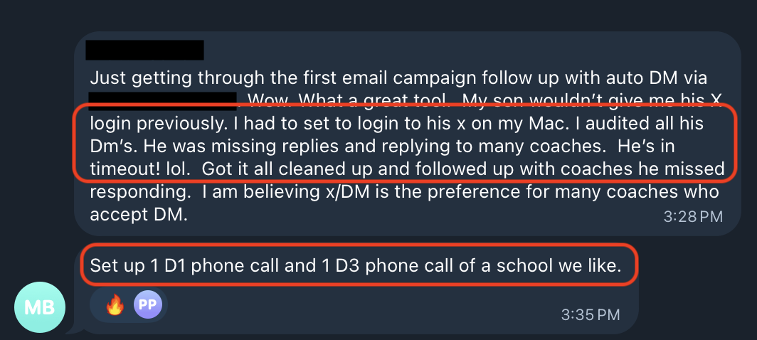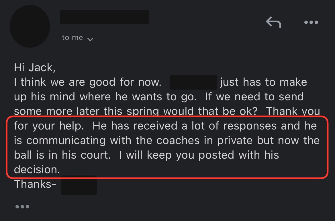 • Hundreds of emails to college coaches for exposure
