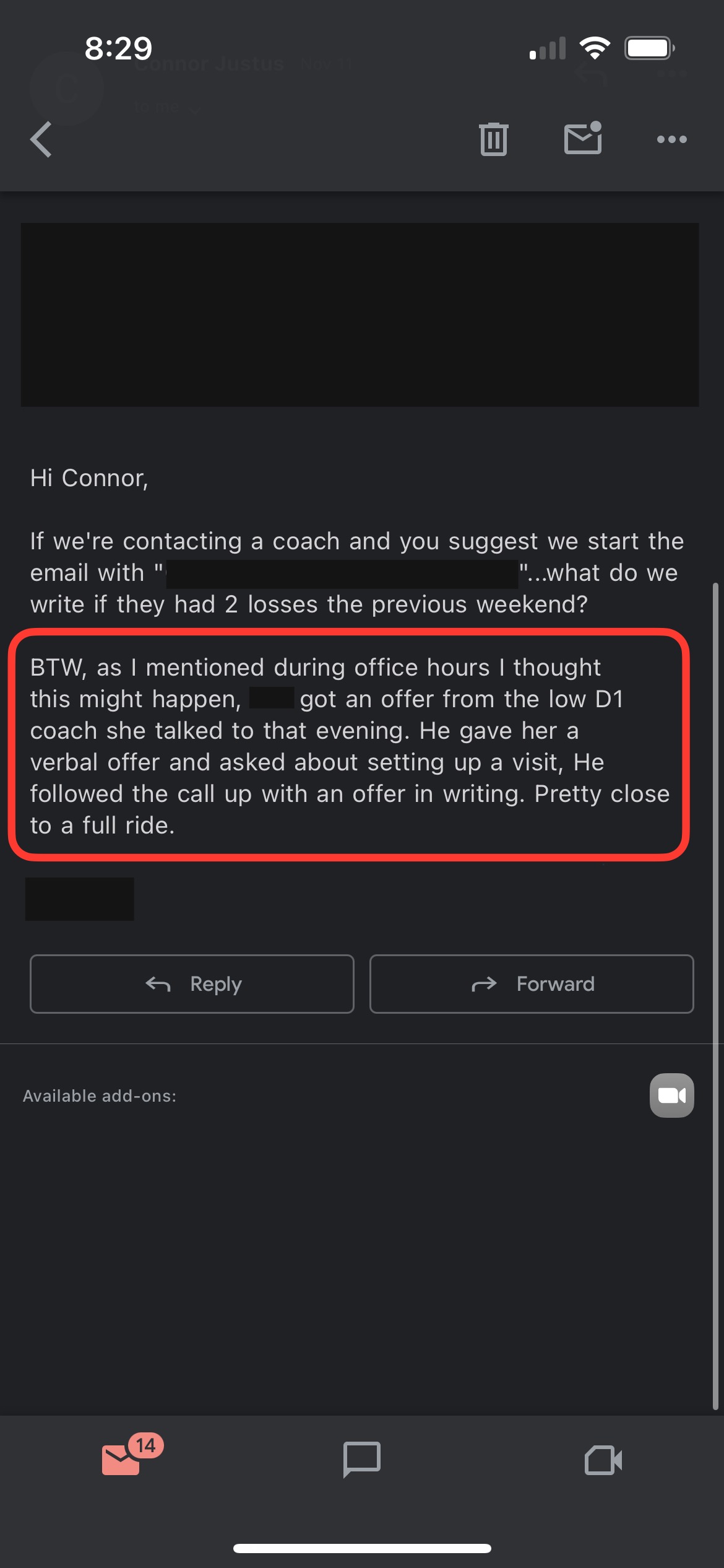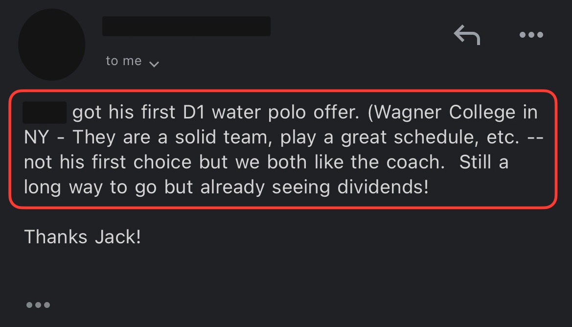 If you complete all 12 weeks, submit every assignment, and execute the outreach plan (minimum 50+ schools contacted), and you don't receive at least 5 coach signs of interest (responses, follows, or phone calls), we'll give you complimentary access to another 12-Week Academy enrollment ($2800 value) to ensure your success.